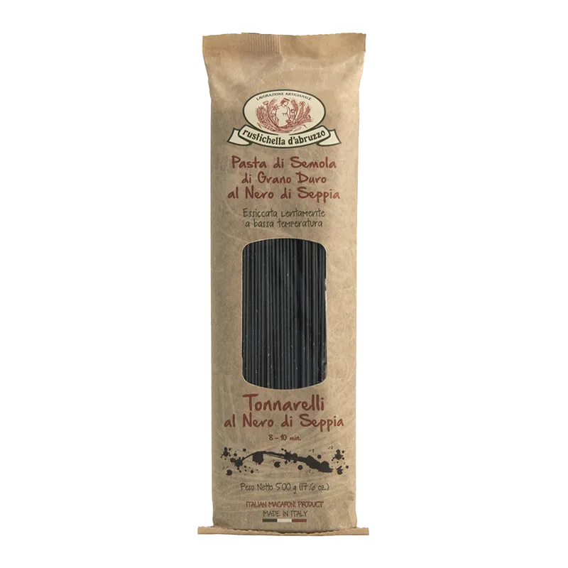 Ces pâtes se marient parfaitement avec des gambas sautées, des palourdes, des calmars ou une sauce aux fruits de mer. Les tonnarelli à l’encre de seiche donnent instantanément à vos assiettes un côté gastronomique.